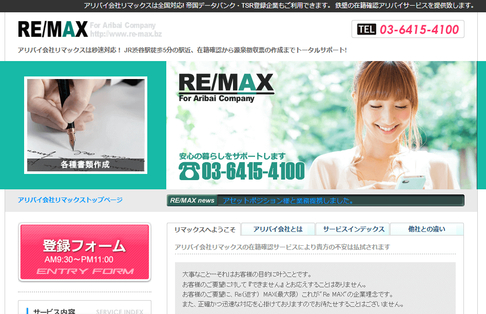 リマックスは、東京渋谷に店舗を持つサービス運営歴の長いアリバイ会社です。